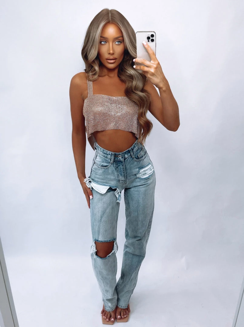 Sorelleuk Albi Diamanté Top – Rose Gold
