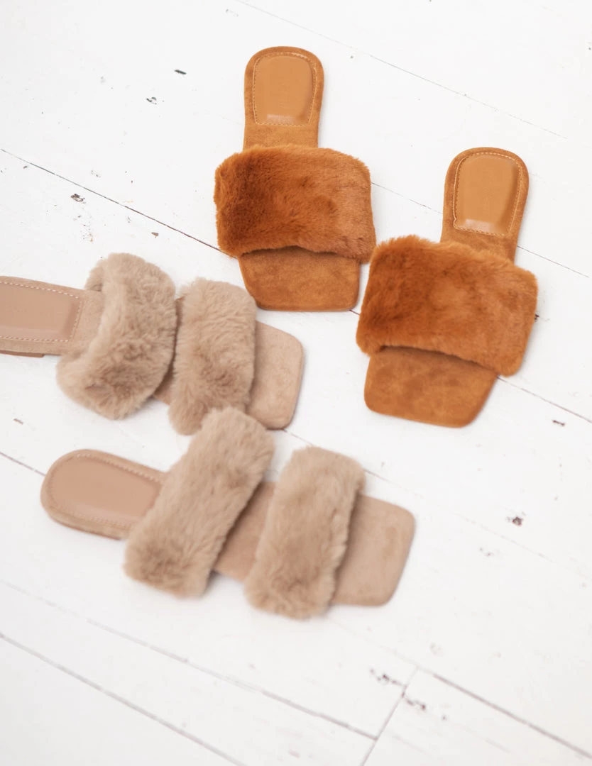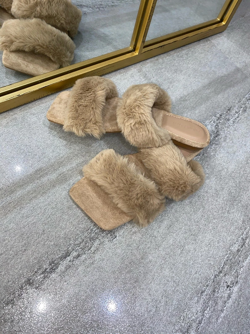 Sorelleuk Issy Fluffy Double Strap Slippers – Nude(SALE)