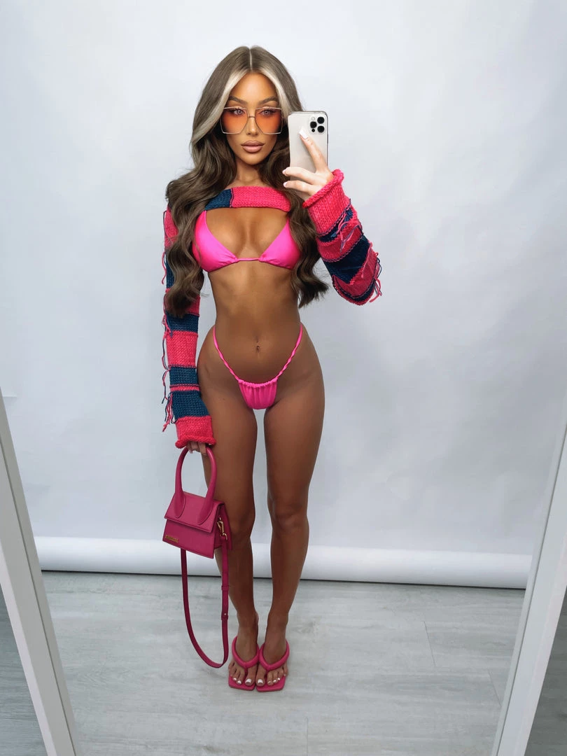 Sorelleuk New Arrivals Kitty Extreme Cropped Knitted Top – Pink